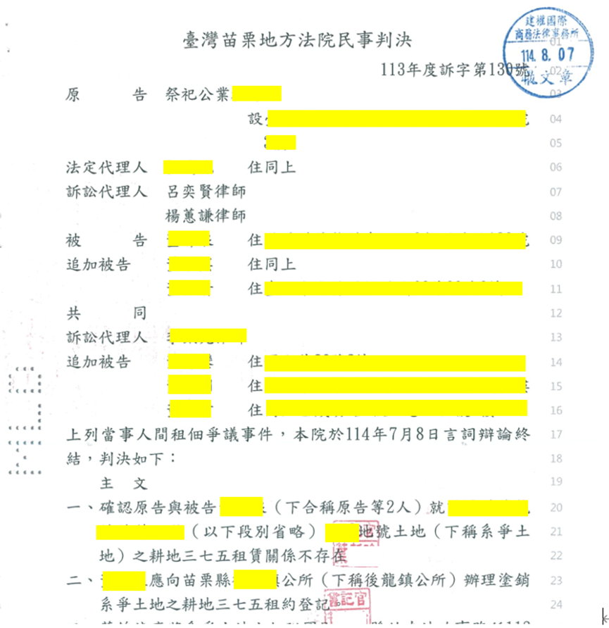 三七五減租訴訟「已無耕作事實」案例:勝訴!